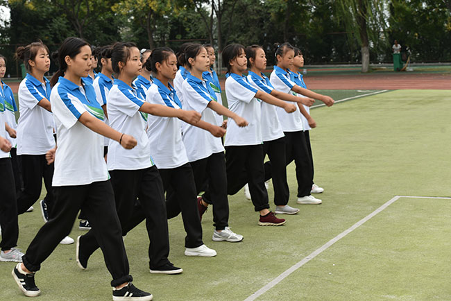 队列队形、毅力体能训练是军事技能训练的主要项目,每一个动作,在教官的亲自示范与指导下,队列整齐有序,气势磅礴,很好地培养了学生的集体意识、纪律观念、坚强意志和良好品质。
