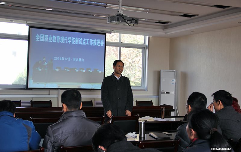 12月12日下午14时,在河北唐山职业技术学院召开全国职业教育现代学徒制试点工作推进会,我校作为试点工作参与研究设计的学校之一,不单派出了专人赶赴现场参加会议,还组织全体教研室主任以上人员,在会议室统一观看推进会网络直播,认真领会会议精神,学习和借鉴相关企业、学校的成功经验。