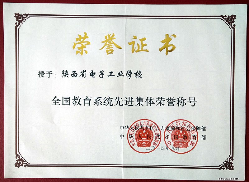 在新中国成立65周年和第30个教师节来临之际,为进一步弘扬尊师重教的良好风尚,增强广大教师、教育工作者的荣誉感和责任感,吸引更多更优秀的人才投身教育事业,促进教育事业科学发展,人力资源社会保障部、教育部决定,授予陕西省电子工业学校等500个单位“全国教育系统先进集体”荣誉称号。