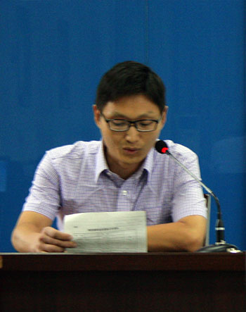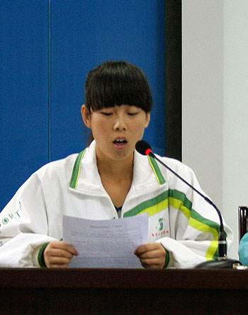 图4:教师代表(马海彦老师)发言 图5:学生代表发言