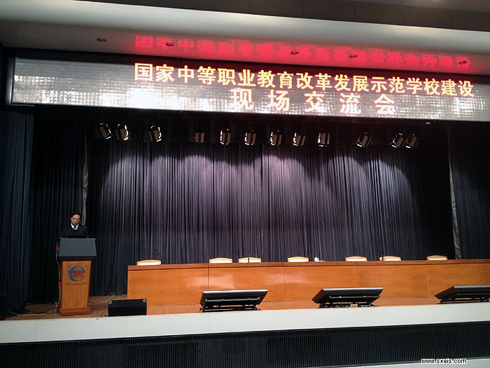 2013年12月23日-25日,教育部组织了国家中等职业教育改革发展示范学校建设现场交流会在上海召开。会议围绕学习贯彻党的十八届三中全会关于加快现代职业教育体系建设的精神,对第一批项目学校取得的成绩与经验进行了全面总结,研究部署了进一步深化项目成果、推进改革创新的工作任务。教育部副部长鲁昕,教育部职成司司长葛道凯,上海市副市长翁铁慧以及各省教育行政部门主管领导,示范学校校长等400多人与会。我省在教育厅副厅长蔡钊利的带领下共有7人参会,我校校长伊逊智和示范办主任王迎尉参加了本次大会。