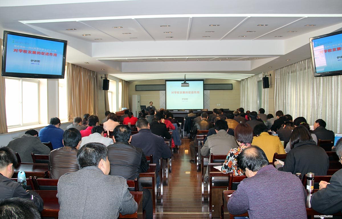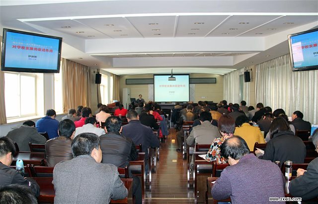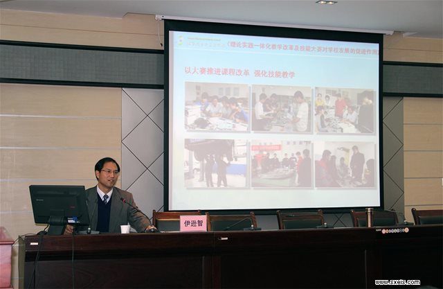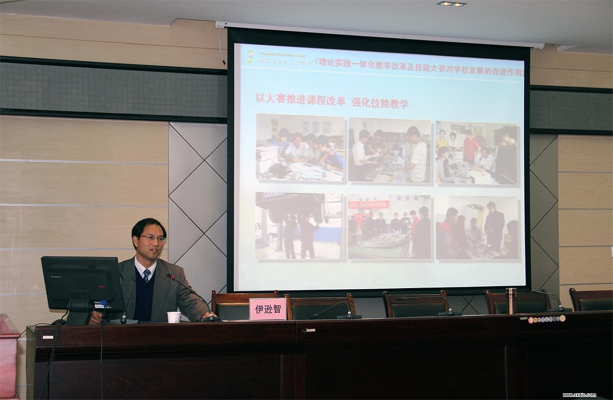 2013年11月20日下午14:30在陕西工业职业技术学院崇文楼10楼第五会议室,我校伊逊智校长应教育厅相关领导要求,为参加2013年陕西省中等职业学校教学管理人员培训班的学员,作了一场主题为:“理论实践一体化教学改革及技能大赛对学校发展的促进”的讲座,为到会的全省职业学校及县级职教中心的教务科长介绍我校“理论实践一体化”教学改革及“技能大赛”情况,从取得成绩、做法、效果及影响等方面进行了详细介绍。