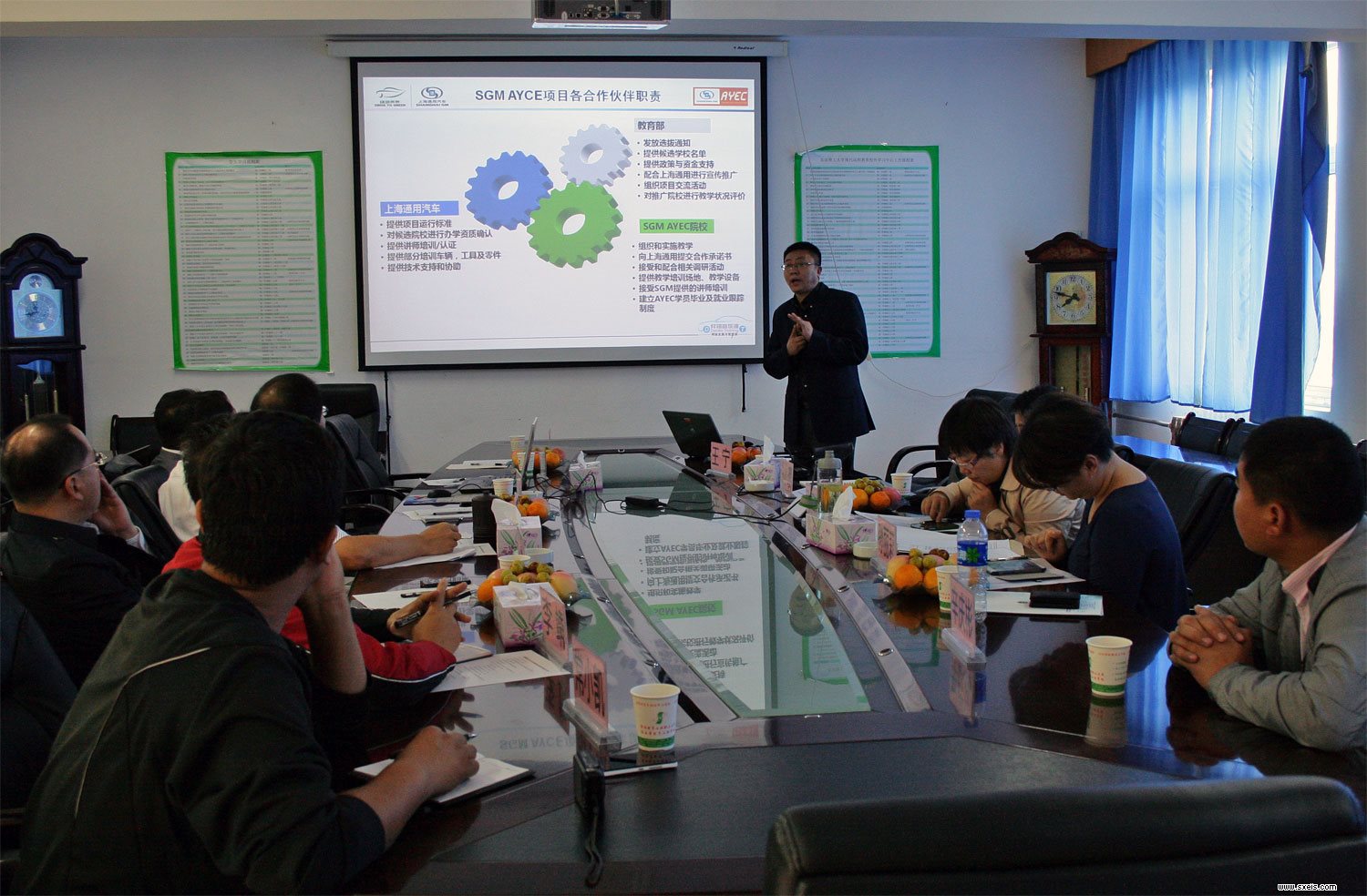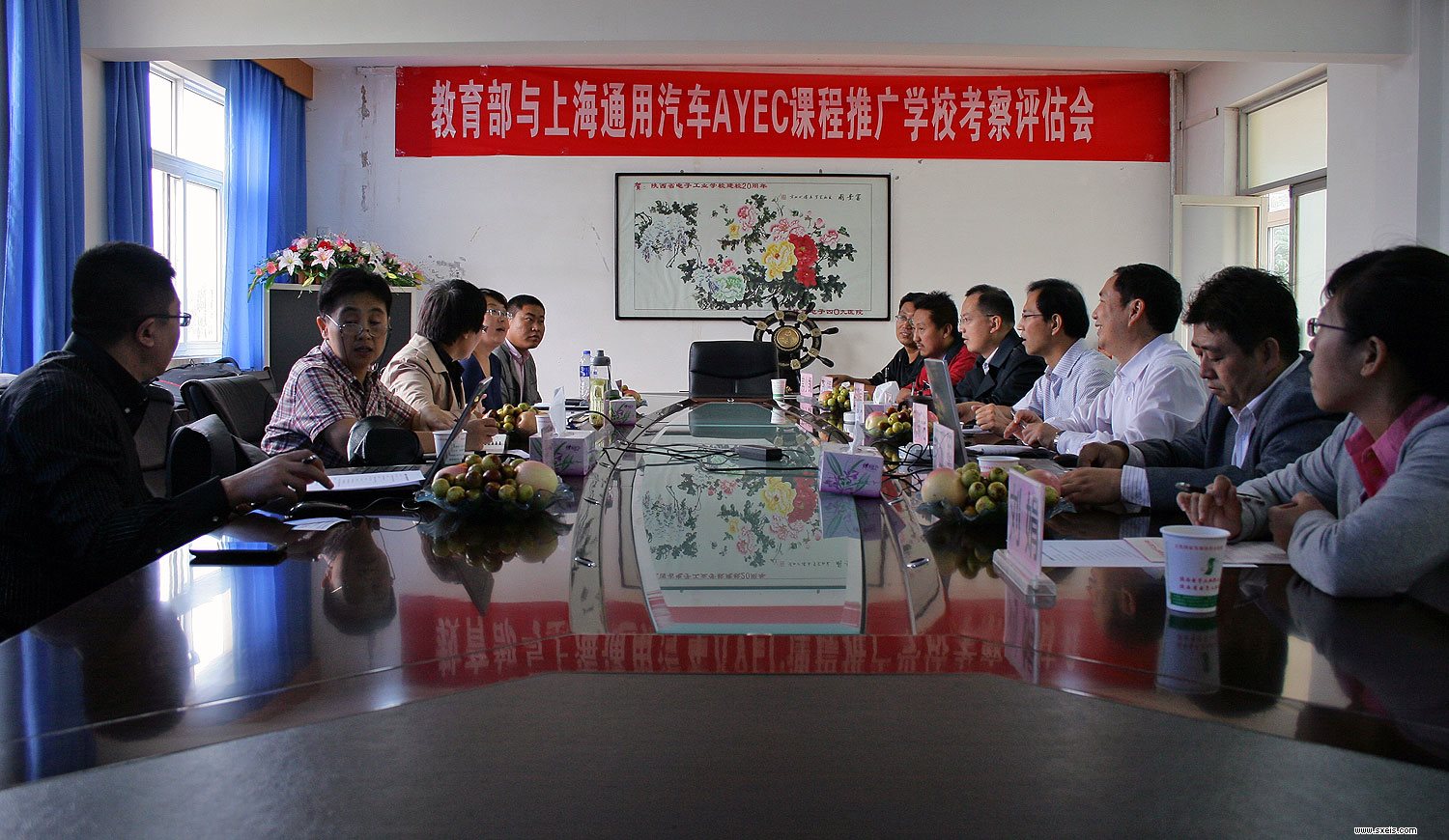 在国家政策的引导下,在我校领导的大力支持下,为响应国家关于加强学校和企业合作的号召,2013年9月24日,教育部联合SGM/PPG/奔腾三家企业校企合作项目评估组到我校进行参观指导。专家组参观了我校汽车工程系教学实训设施,并在会议室座谈交流。校企合作专家组和我校争取最大程度利用校企双方的优势,发挥学校教育系统性的优势,为社会及企业培养更多高素质、高技能的应用型人才,同时也为学生实习、实训、就业提供更大空间。