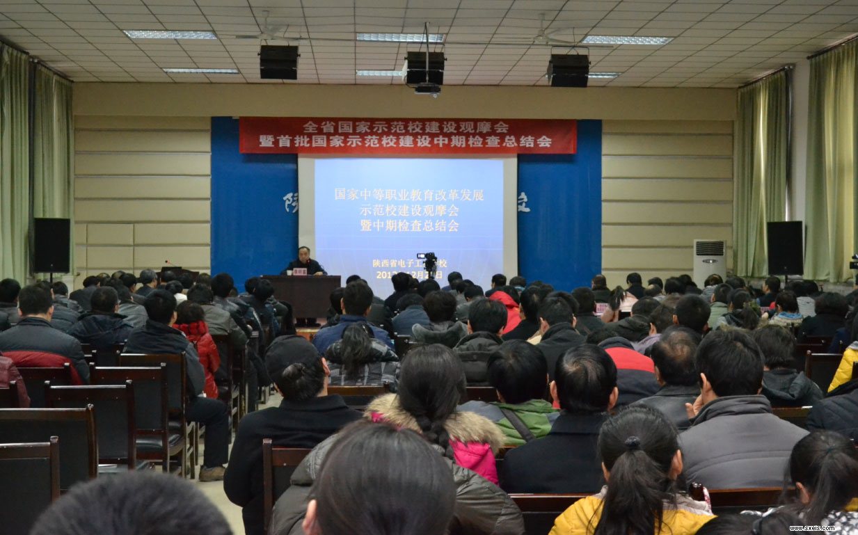 2012年12月21日,全省国家中职示范校建设现场观摩暨首批示范校建设中期检查总结会在陕西省电子工业学校报告厅举行。来自全省34所国家中等职业教育改革发展示范校校长、各校相关专业负责人以及教师代表、示范校建设检查工作专家组成员,共计200余人参加了会议。省教育厅职成教处处长李明富、省人力资源和社会保障厅职业能力建设处处长李西安出席会议并讲话。