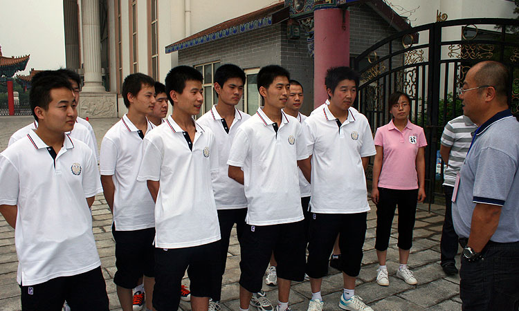 图3:省教育厅职成处郭强副处长(右2)和领队交谈