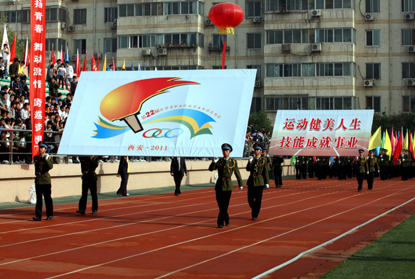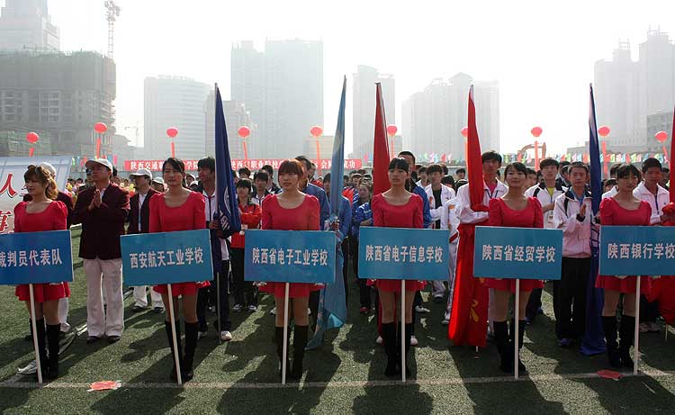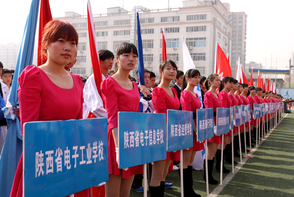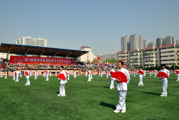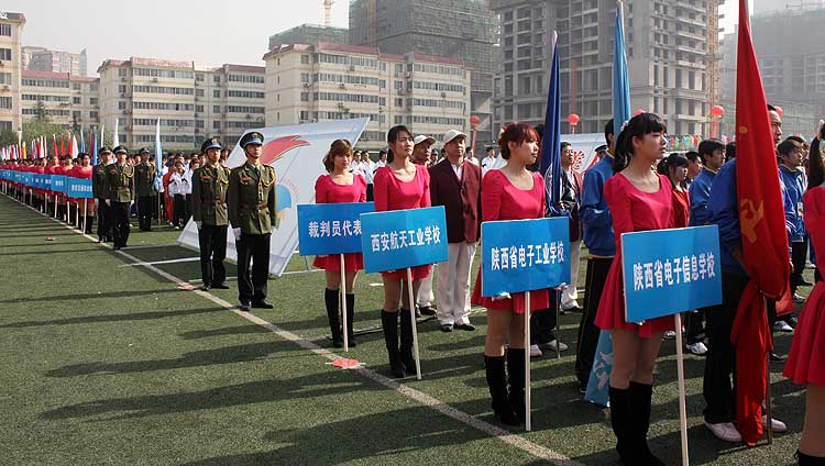 4月22日,由陕西省教育厅主办,陕西省职业技术教育学会协办,陕西交通职业技术学院承办的第22届陕西省职业院校学生田径运动会在陕西交通职业技术学院隆重开幕。本届运动会的主题是:运动健美人生,技能成就事业。全省共有80所职业院校组队参赛,1300余名运动员将在18个竞赛项目上开展为期三天的角逐。我校共选派了11名队员组队参加此次运动会。此次田径运动会竞赛分甲组(高职院校组)、乙组(中职院校组)进行,竞赛项目包括100米、200米、400米、800米、1500米、3000米、5000米、跨栏、竞走、接力、跳高、跳远、铅球、铁饼、标枪、三项全能、五项全能等项目,其中男子组、女子组各18项。以下是这次运动会部分图片:
