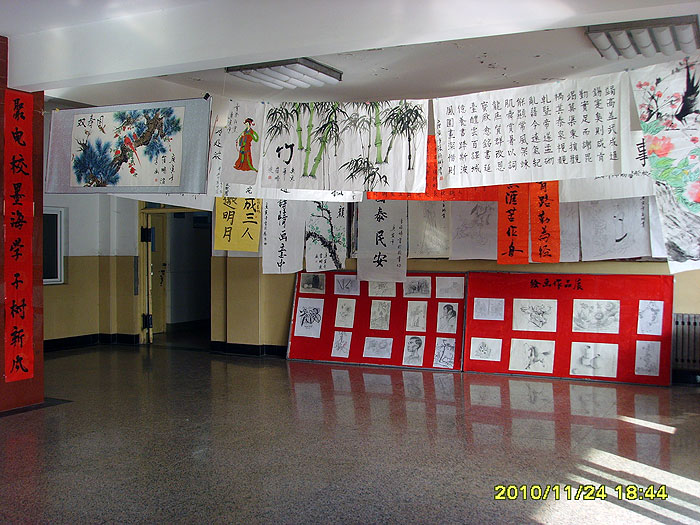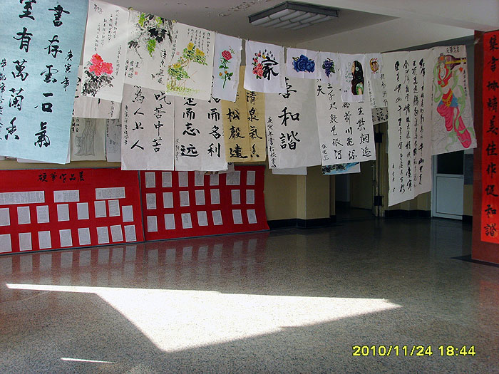 2010年11月21日——26日,由校书法协会主办,学生会各部协办的我校本学期“促和谐、树新风”书画展在教学楼一楼大厅成功展出。