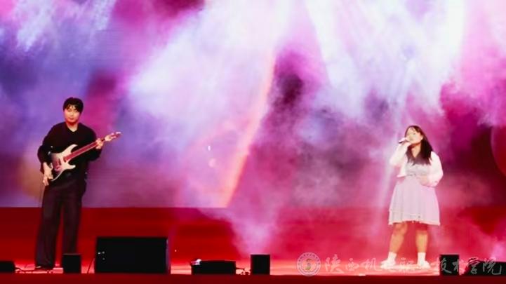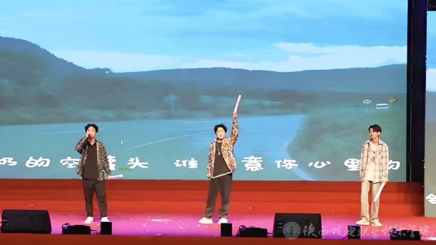 常柏霖、李钰哲、秋柏豪联袂献唱《直到世界尽头》,激昂的旋律瞬间点燃全场热情,彰显出青年学子勇往直前的拼搏精神;智能制造学院倾情演绎我校校歌《匠心筑梦》,熟悉的音符、振奋人心的歌词,既歌颂了学校精益求精工匠精神,又唤起了全体师生的强烈归属感与自豪感;紧接着,他们再度献上《相亲相爱》,温情的歌声传递出校园大家庭的深厚情谊,引发全场共鸣,共同唱响和谐乐章。