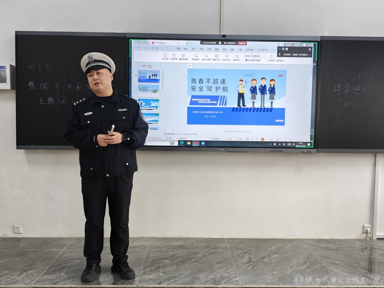 为切实维护校园周边交通秩序,保障师生出行安全,提升广大师生的交通安全意识和自我防护能力,10月29日,陕西机电职业技术学院联合宝鸡市公安局交通警察支队金台大队、宝鸡市公安局金台分局蟠龙派出所,共同开展了校园周边机动车安全专项排查整治行动,并同步举办了一场内容详实、形式生动的交通安全知识讲座。
