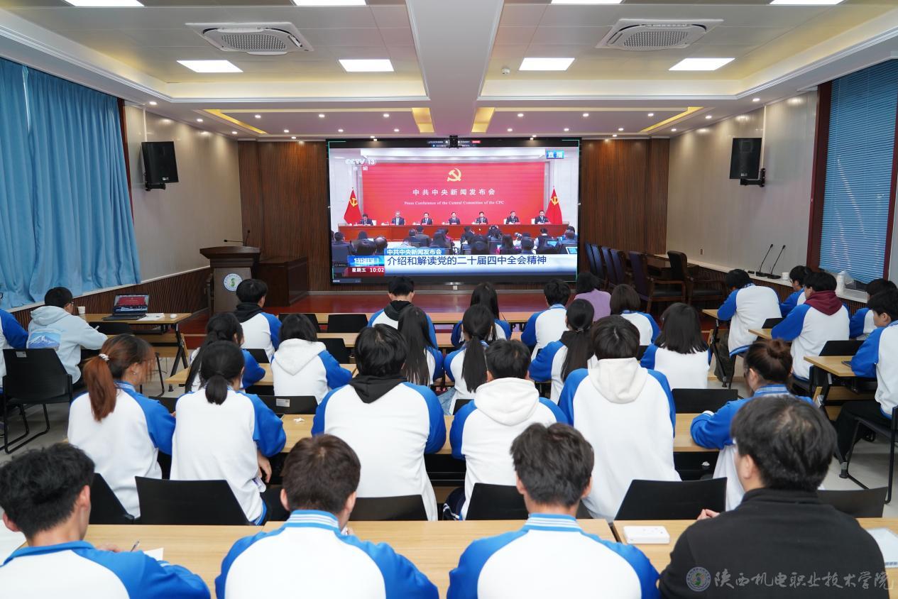 最后,与会师生观看了《中共中央新闻发布会介绍和解读党的二十届四中全会精神》学习视频。