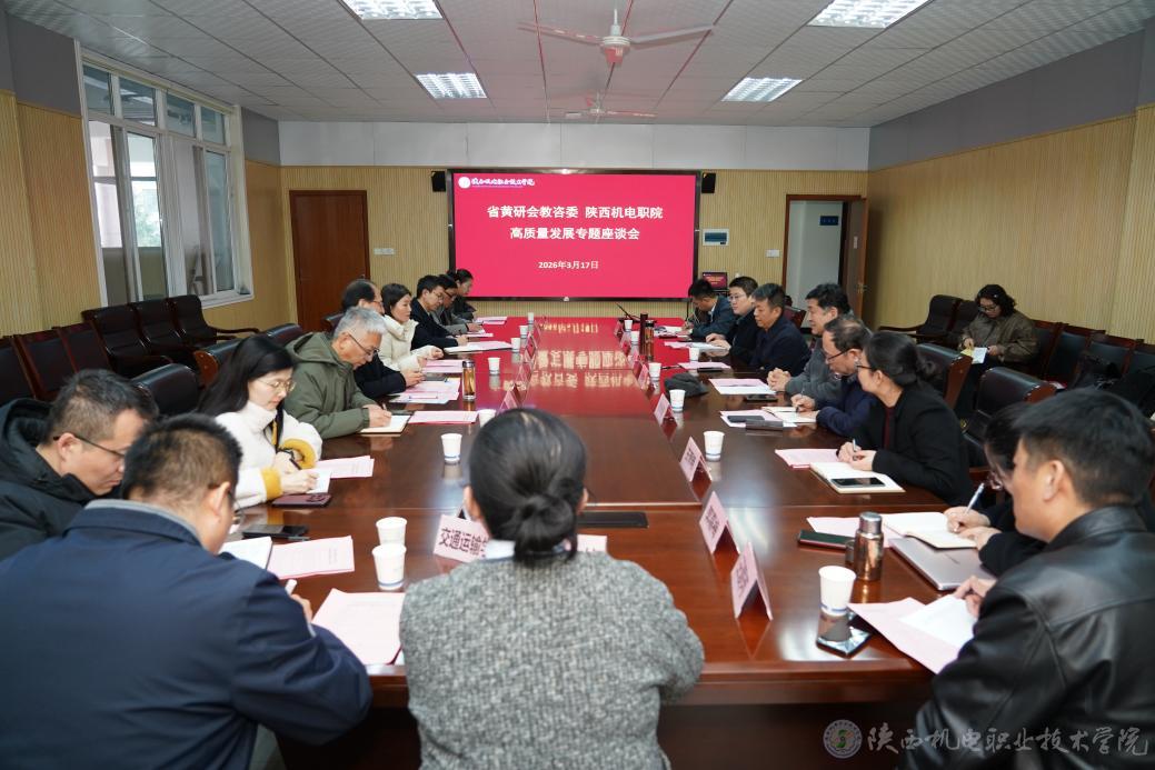 3月17日下午,陕西省黄河文化经济发展研究会教育咨询委员会主任王晓地一行到陕西机电职业技术学院开展高质量发展专题座谈会,党委书记伊逊智出席。