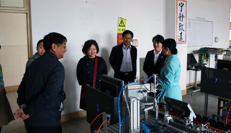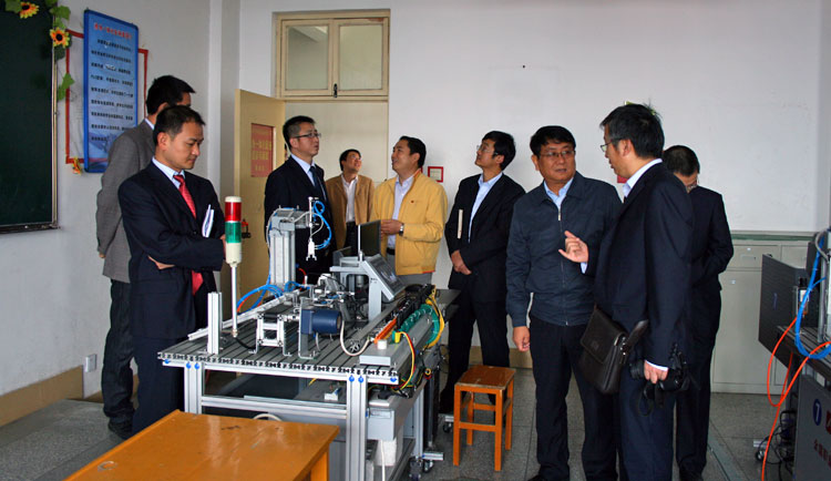图16:建材学校的领导参观机电一体化实习室