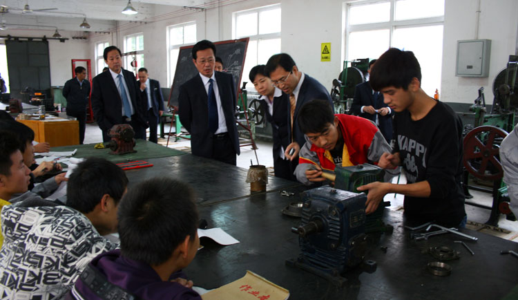 图1:石油化校的领导参观机械拆装实训