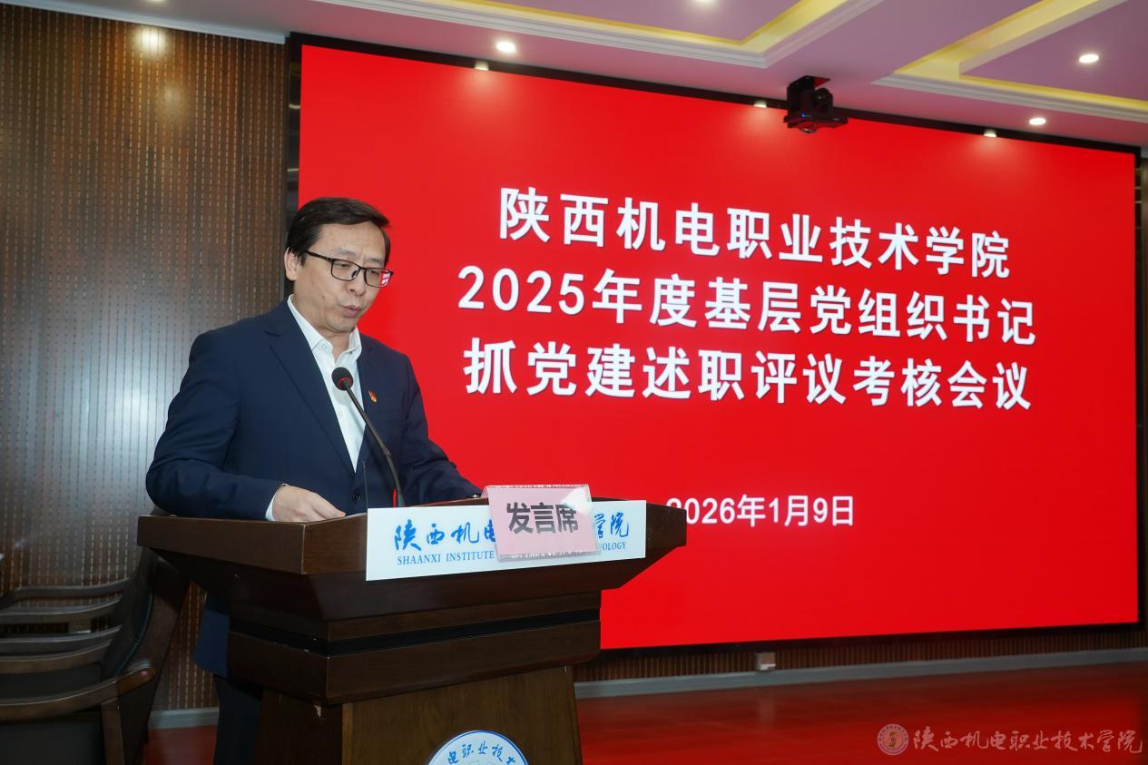 2026年1月9日上午,学校2025年度基层党组织支部书记述职评议考核会议在蟠龙校区博学楼111室召开。党委委员、校领导、各基层党组织书记、各二级学院院长、各职能部门负责人、各基层党组织师生党员代表参加会议。会议由党委委员、校长助理、组织部部长赵争东主持。