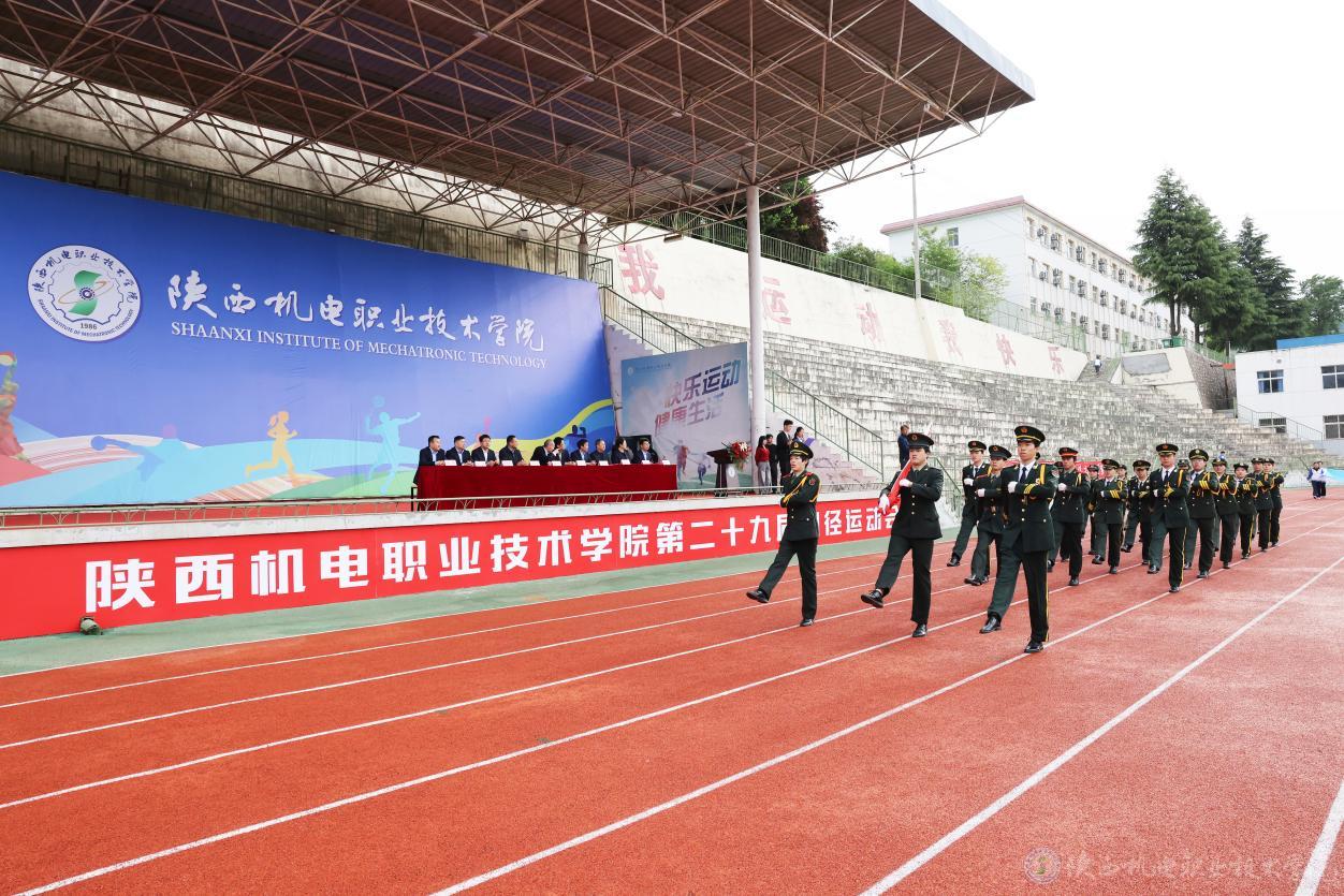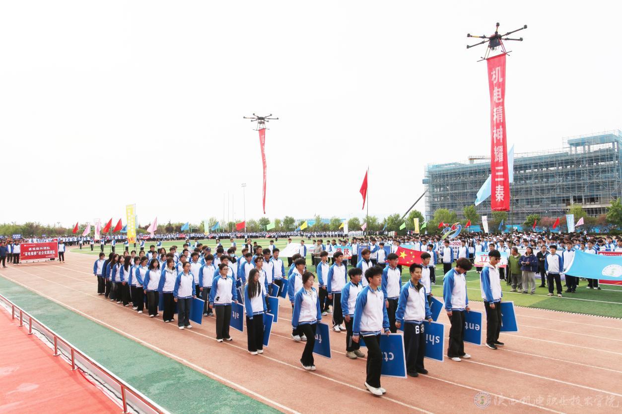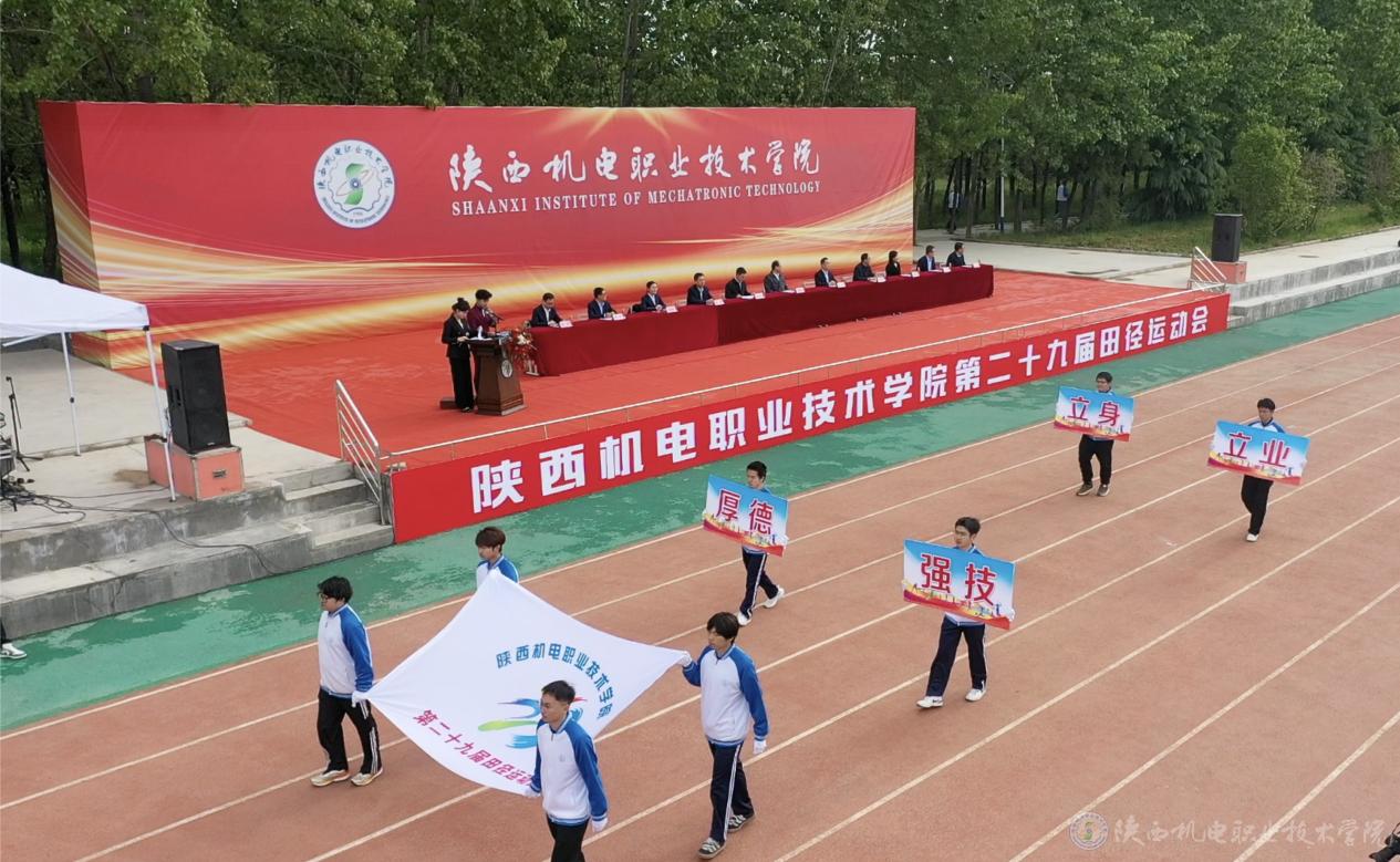 “陕西机电职业技术学院第29届田径运动会开幕!”一声令下,礼炮轰鸣,彩烟腾空,运动会正式拉开帷幕。